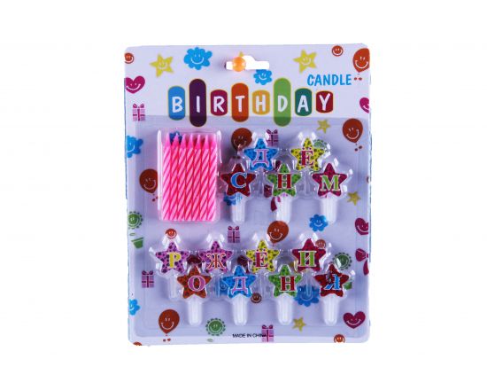 Свечи в торт "С днем рождения", 20х16см, набор 54шт 7351-12/288/