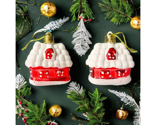 Набор украшений 2шт, 6см, пластик, домик в/п 2016-133 /100/