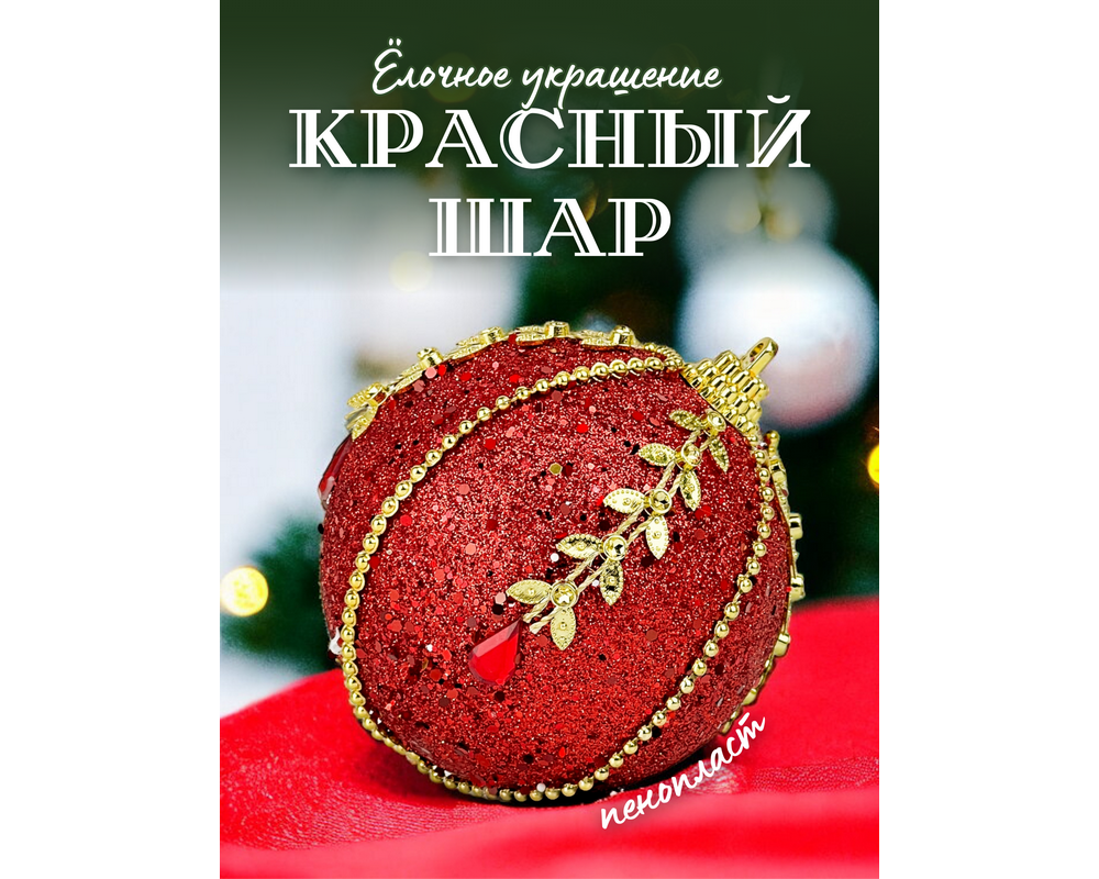 Новогодний шар, 8см, пластик 2016-336 /48/