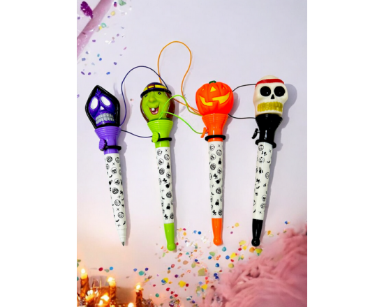 Ручка с черепом, 16см, пластик, шариковая в ас-те KT-775/12/480/