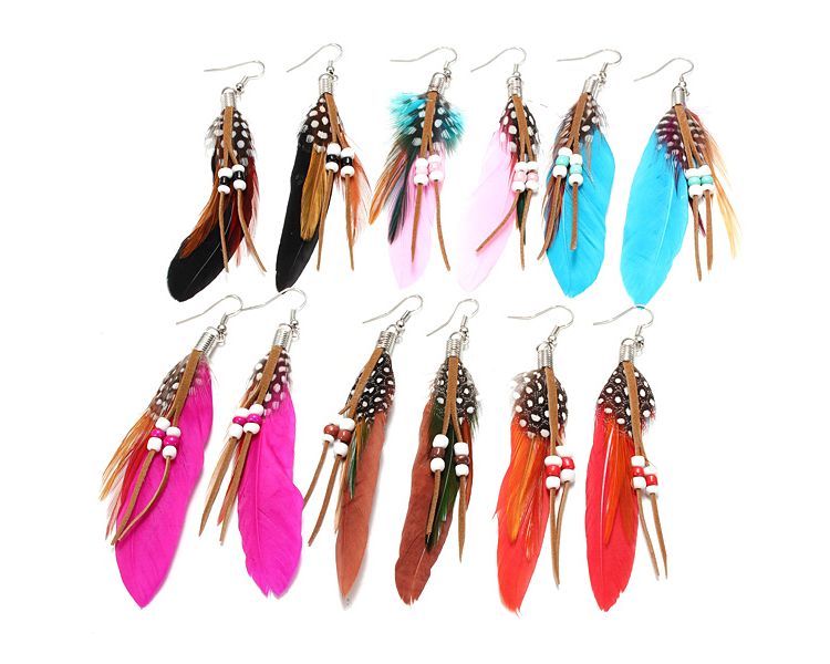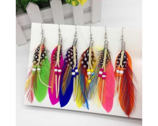 Серьги, перья/металл /1200/