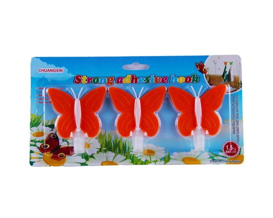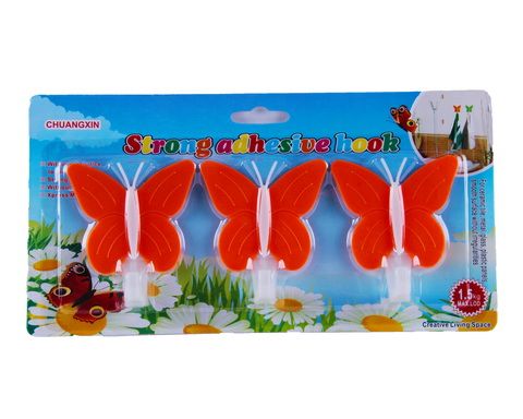 Крючок настенный Бабочка, 9см, лист 3шт, на липучке 35221-30/240/