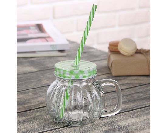 Банка-кружка стеклянная с трубочкой 10см стекло 16322-55 /80/