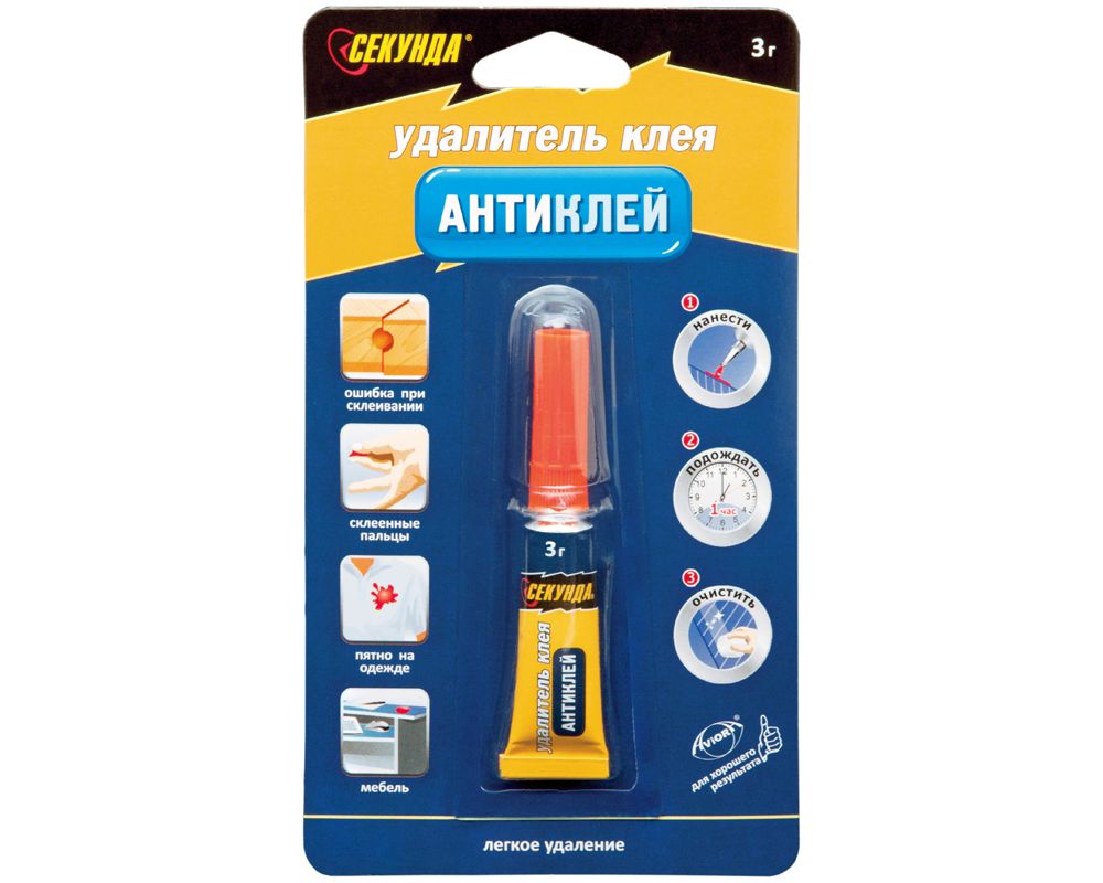 Удалитель клея Антиклей, "СЕКУНДА", на инд. блистере, 3г на блистер-карте /144/403-052