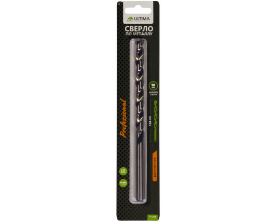 Сверло по металлу Ultima спираль, удлинен, P6M5, 10,0х184 мм /50/200/