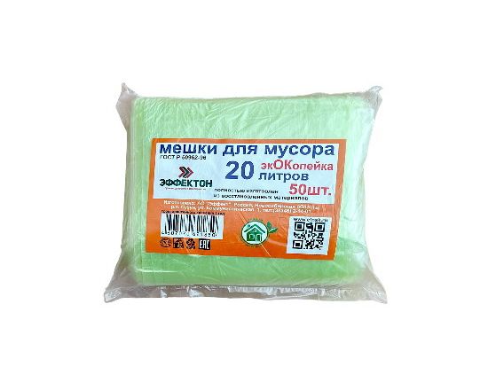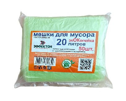 Мешок д/мусора ПНД 20л50шт.(45х56) ЭкОКопейка,зелен/30/