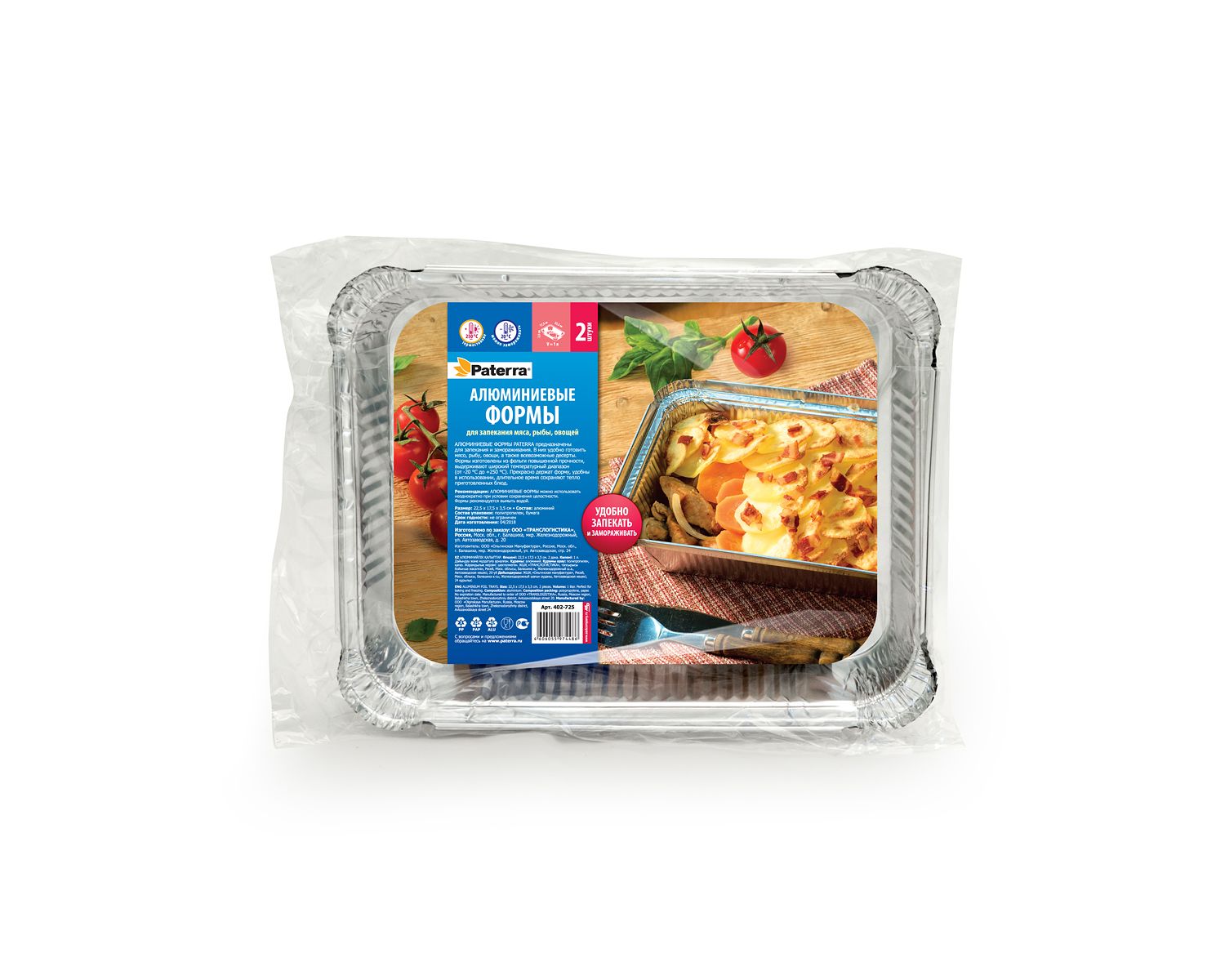 Форма алюминиевая д/зап. мяса, рыбы, овощей PATERRA, 22,5*17,5*3,5см, V=1л, 2шт 402-725