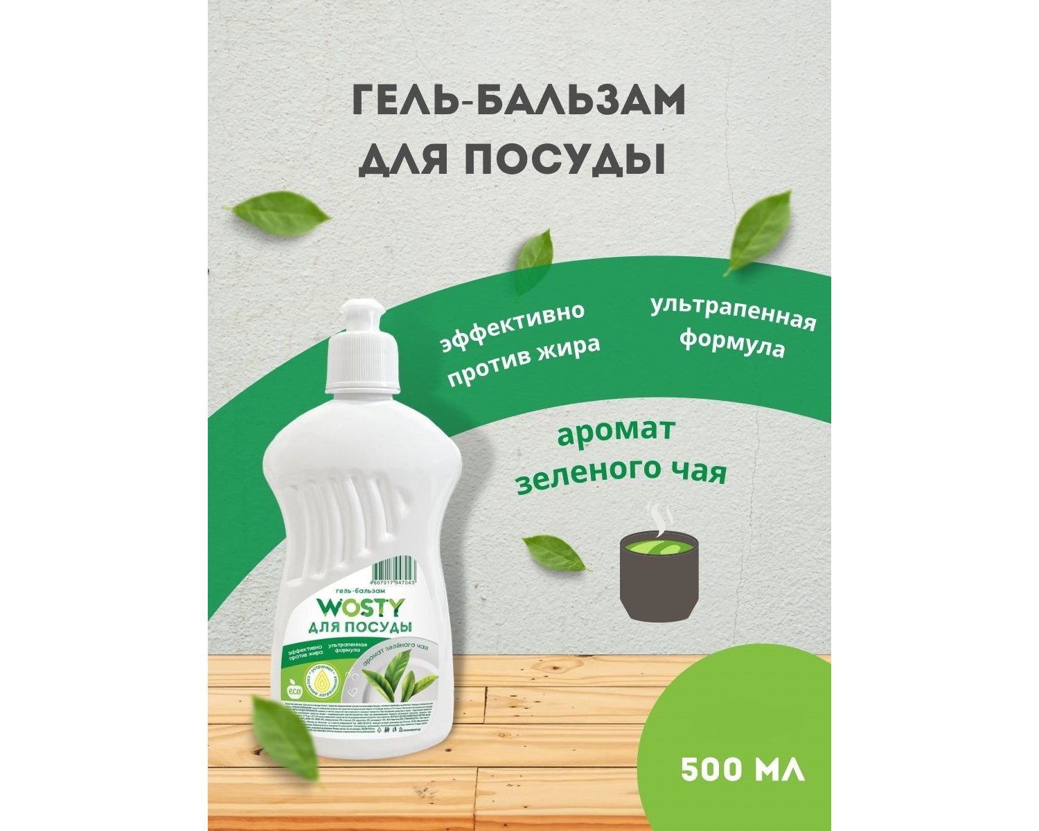 Гель-бальзам д/посуды Аромат зеленый чай 500мл Wosty МО-103/21/