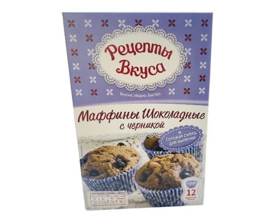 Готовая смесь д/выпечки "Маффины шоколадные с черникой", "Рецепты вкуса" 300г /6/