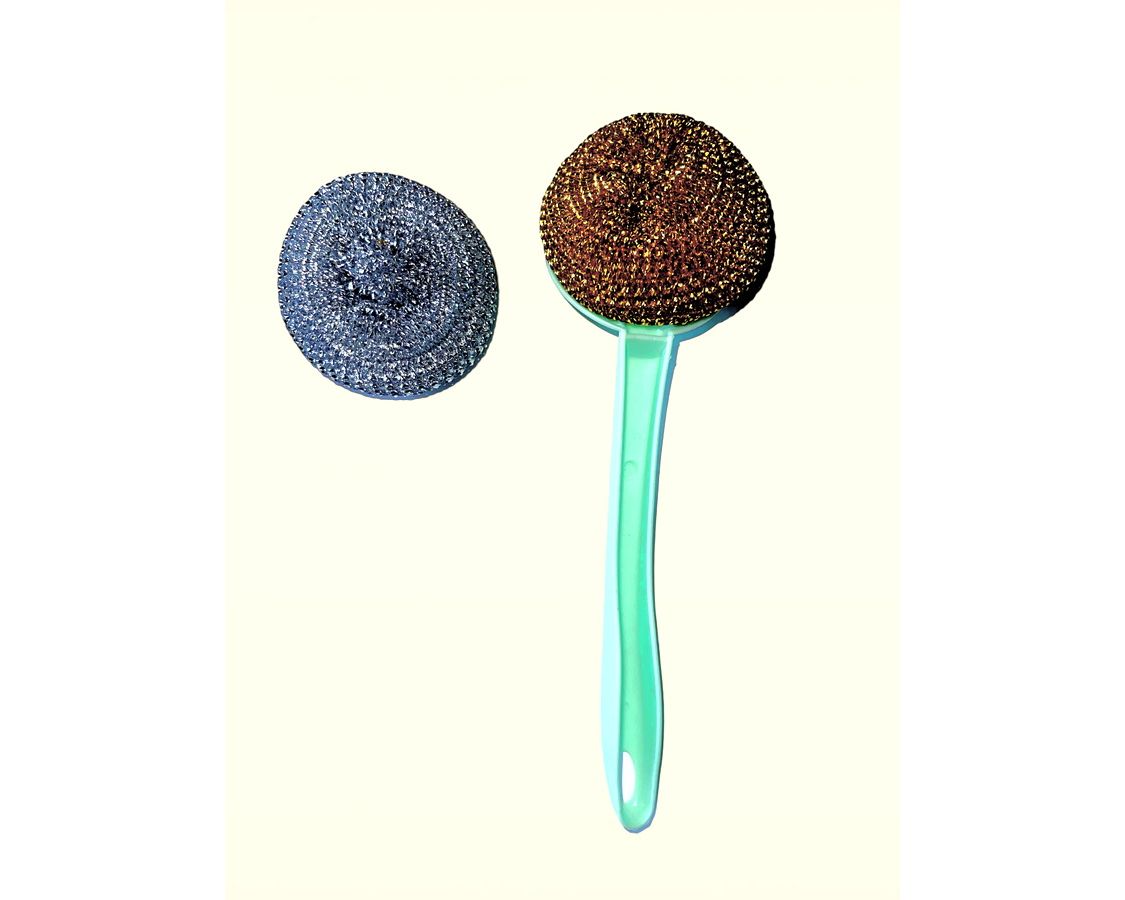 Губка для посуды, с ручкой 2в1метал+пластик 235-236 /240/