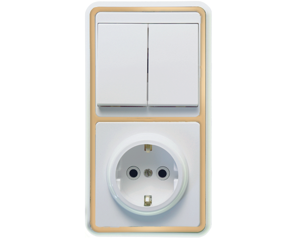 Блок (1роз+2кл. выкл.) СУ зол. рамка, земля, АБС-пластик БКВР-032 "З"Кунцево-Электро БЭЛЛА