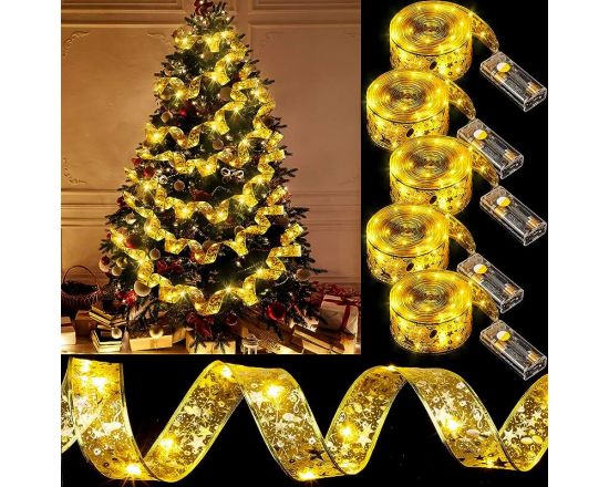 Ленточная светодиодная гирлянда, новогодняя жёл 2м на батарейке /100/
