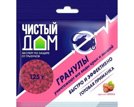 От грызунов приманка гранулы 125гр. (ар-т ореха) бромадиолон, Чистый дом 03-350